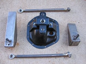 This is an interesting cover that I found for drag racers and 4x4 Dana 44 users that were looking for bearing supports for the D44. What is interesting is that this part looks like it could be very easily modified to be used as the center pivot like the above, but most of the work looks like making a bracket instead of welding to a flimsy steel cover. The casting weights in at around 7lbs and the link to the manufacture is TA Performance And seems to be about 160 bucks and includes the nuts bolts and gaskets as they used to say... One thing to note is the HIGH mount for the fill hole. This is for 4x4 application with a rotated axle which is typically done when lifting suspension. For a flat axle this fill hole is ABOVE the axle tube height on the housing this is not good. Adjust levels below axle tube height when filling!